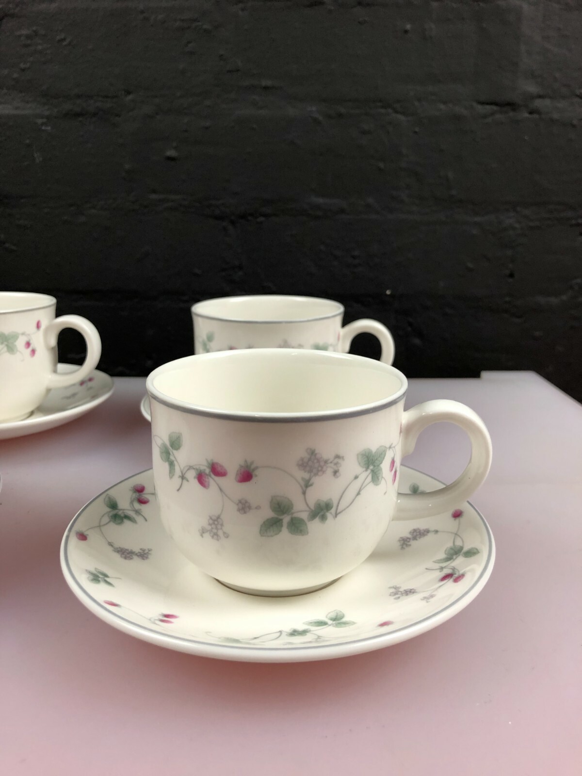 4 Royal Doulton Expressions Strawberry Fayre Teacups & Saucers 8 Sets Available